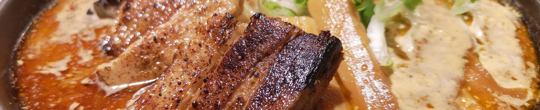 丹精込めて造り上げた自慢の味噌だれを鉄鍋で一人前ずつ焼くことにより、さらにさらにとても香ばしくコクのある味になりました。麺は全国食べ歩きをし、この味噌に負けないコシと旨味がある多加水太麺を厳選しました。